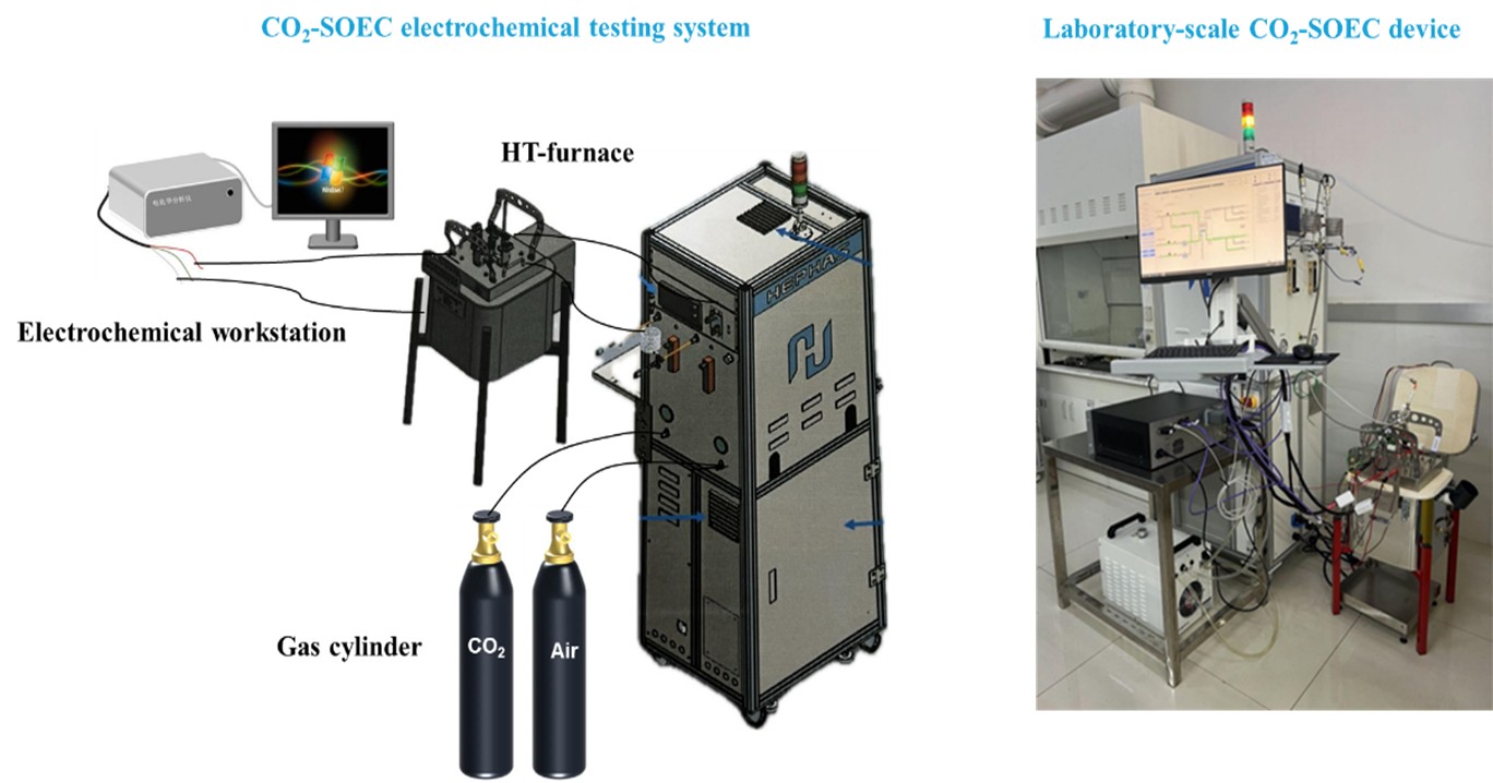 针对此,中国科学院新疆理化技术研究所能源化工研究中心团队充分利用玄武岩抗压能力强、耐腐蚀、耐高温等的优良物理化学性质,成功开发了新型镍-玄武岩片(ni-bt)材料,并将其作为soec的阴极,电池结构为 ni-bt/sdc/ysz/sdc/lscf。ni-bt被用作阴极材料,lscf 用作阳极材料,ysz 用作固体电解质。在电极之间添加了 sdc 作为中间层,以增强离子导电性并加强 ysz与ni-bt 之间的结合。通过一系列表征方法研究其性能,确认了其在 co2-soec 中的有效性。并在ni-bt/sdc/ysz/sdc/lscf 单电池中实现了高电流密度(480 ma/cm²)和低极化电阻(1.91 ω·cm²)。随着操作温度的升高,单电池的电流密度增加,这归因于有利的热力学条件和快速的电化学反应动力学。同时,该电池表现出高co生成(7.45 ml min-1 cm-2),法拉第效率超过90%。本研究的结果表明,新型镍和玄武岩基阴极作为soec电解co2领域具有潜在应用前景。
